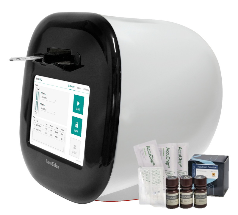 The ADAM-MC2 represents a new standard in automated fluorescence cell counting. The instrument utilises sensitive fluorescence dye staining, LED optics, and CMOS detection technologies to make the cell analysis more accurate and reliable. The ADAM-MC2 measures the number of total cells, viable cells, non-viable cells and shows viability results. Accuracy is enhanced because the unit counts cells based on size and shape. Aggregated cells are counted individually and debris is excluded from results. The ADAM-MC2 utilises a disposable microfluidic chip to make the operation extremely simple, easy, and cost-effective.